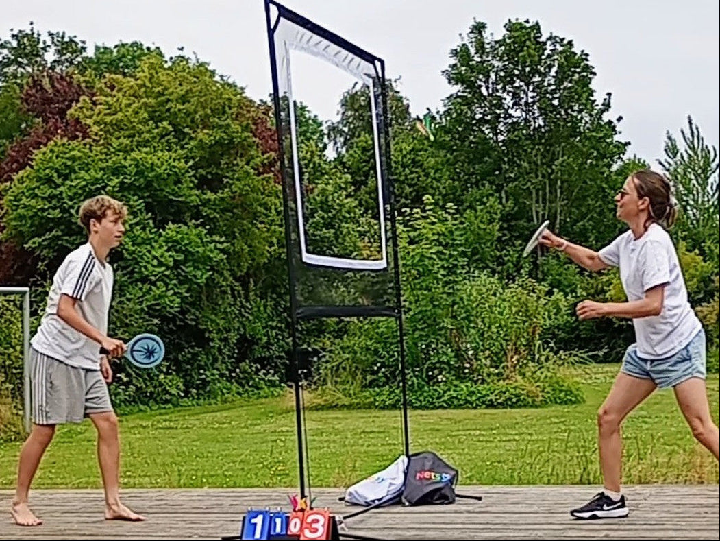 Spillet og nettet kræver meget lidt plads. Find en jævn overflade så der udover nettet er 2½-3 meters på hver side af nettet til at spille på.