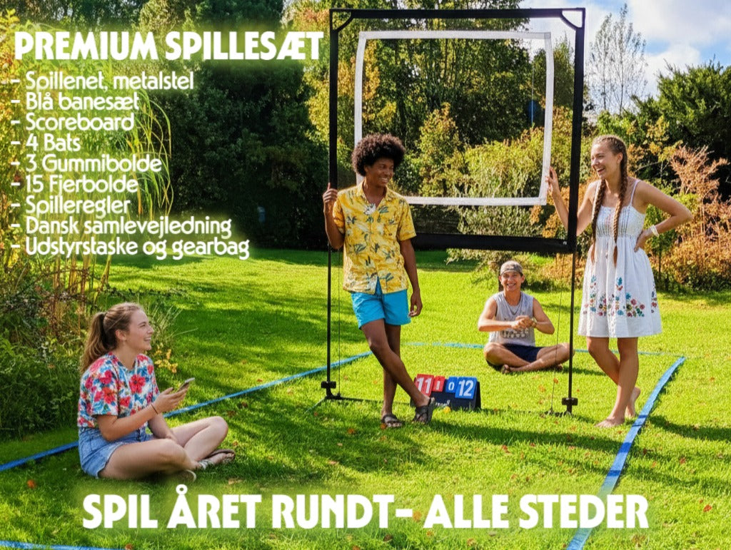 Nordic Batgame er Danmarks officielle sport med gummi og fjerbolde og her får du alle spilmuligheder - alt i 1 spillesæt: Nordic Batgame til have, strand, gade og park, samt de nye spilvarianter: Minitennis, MiniPadel og Minipickleball til gaden. Et nemt valg: The Nordic Batgame!